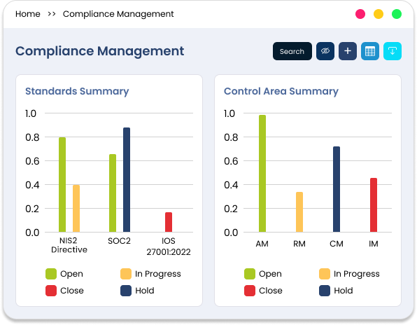 Manage NIS-2, ISO, GDPR, DORA, CRA, and more—all customized to fit your needs.